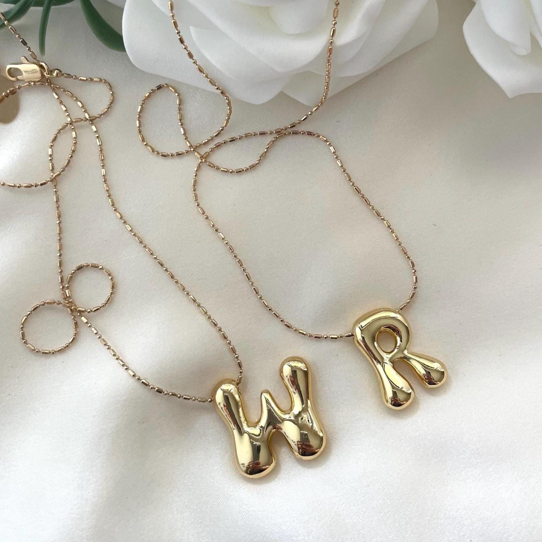 Gold Bubble Letter Initial Necklace: Personalized 18k Plated Pendant