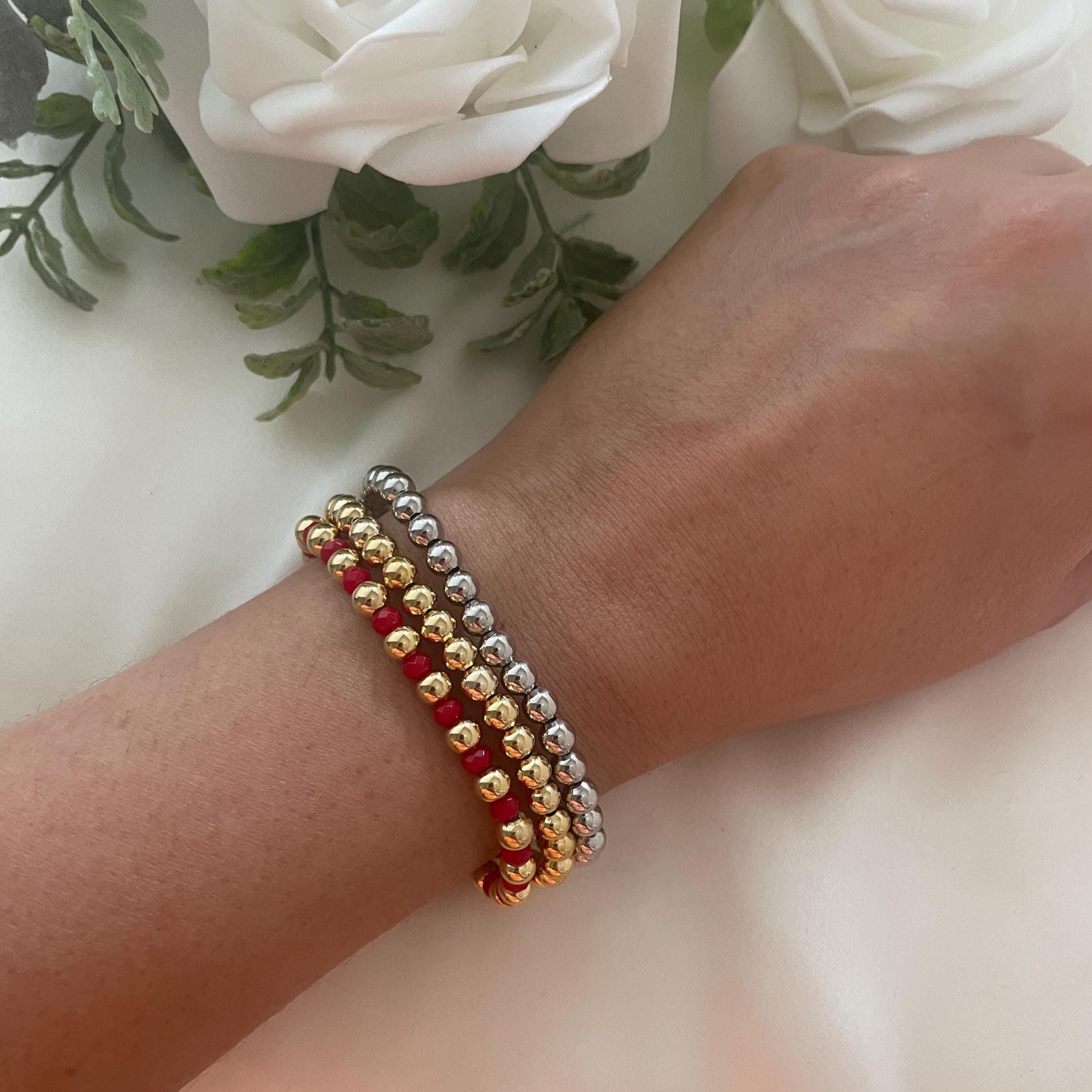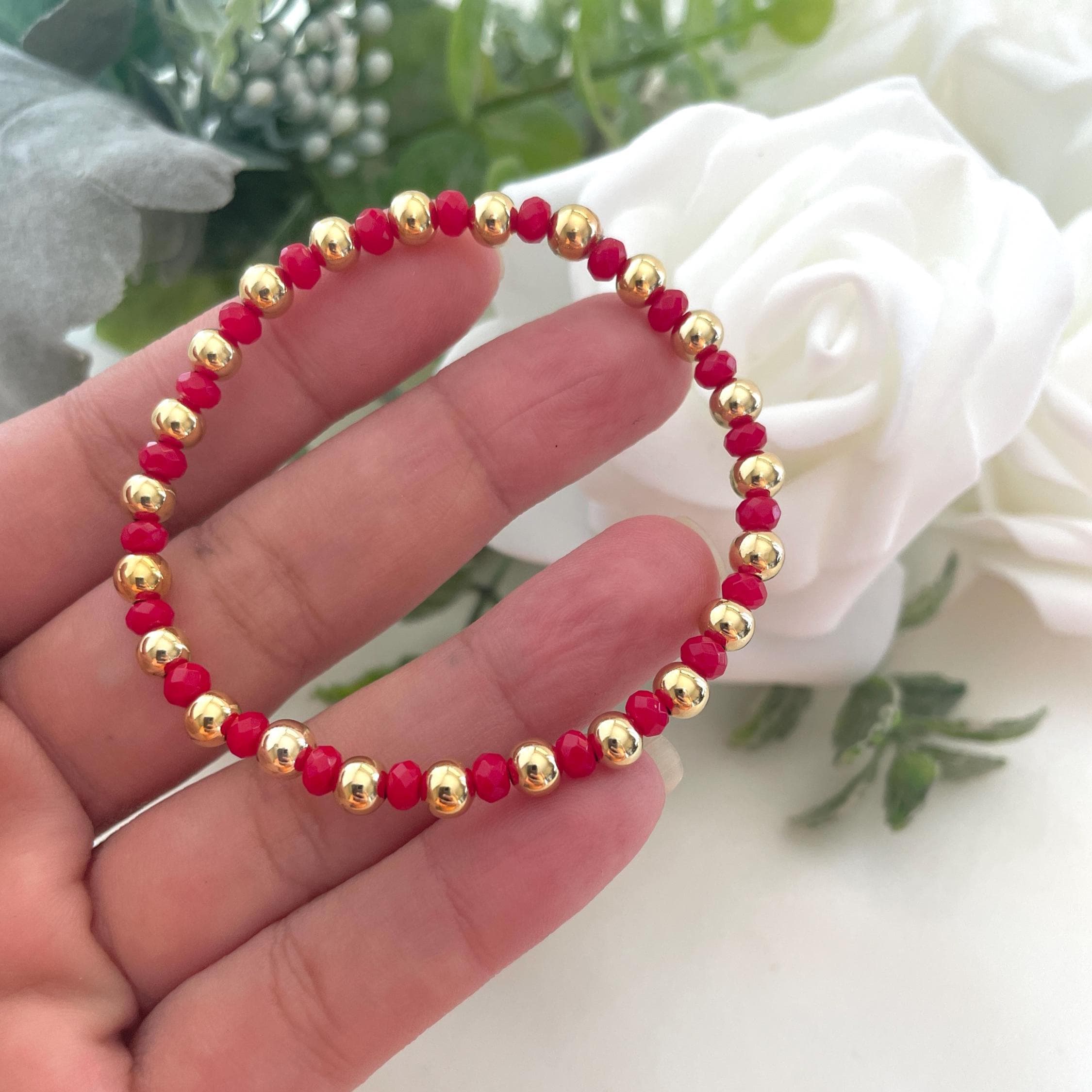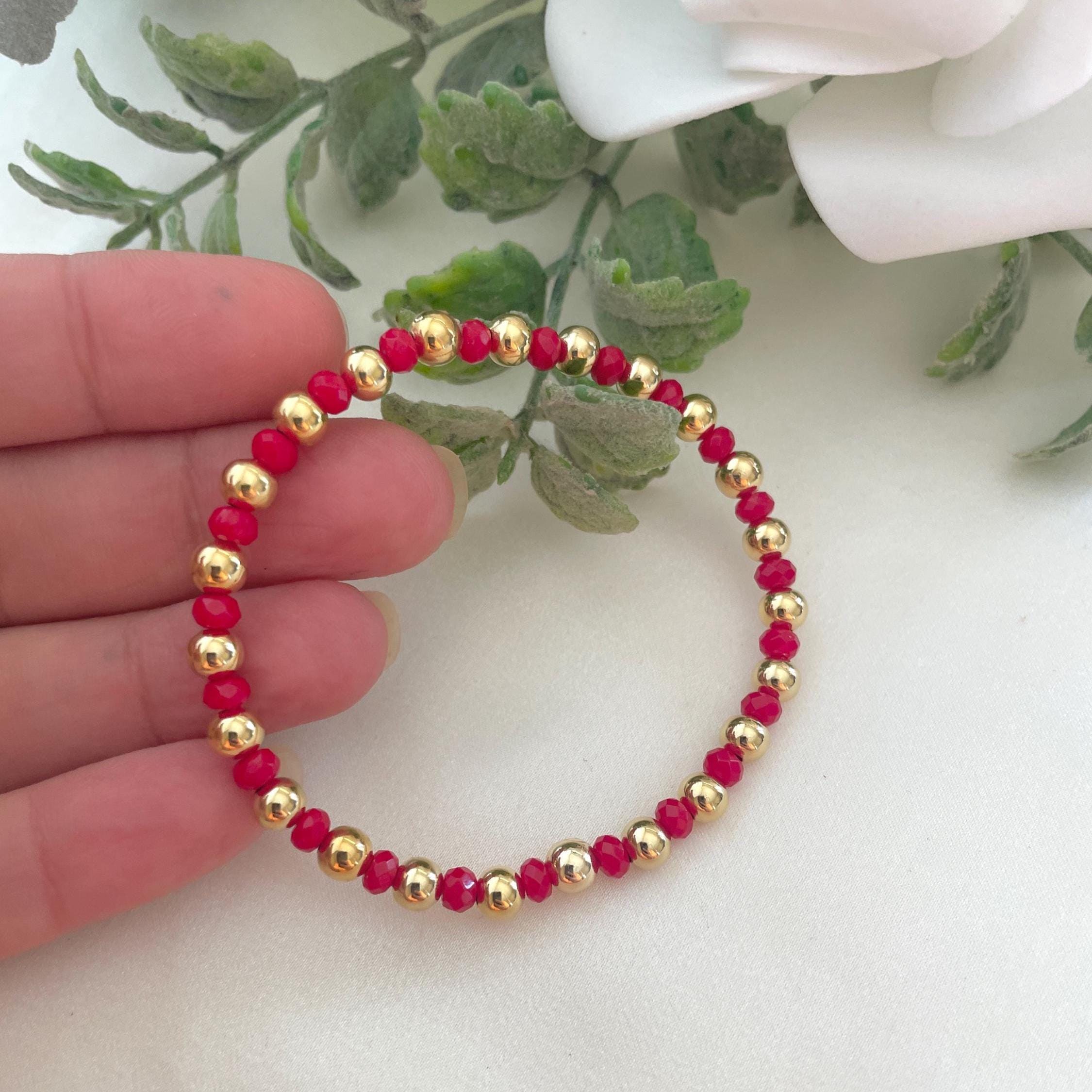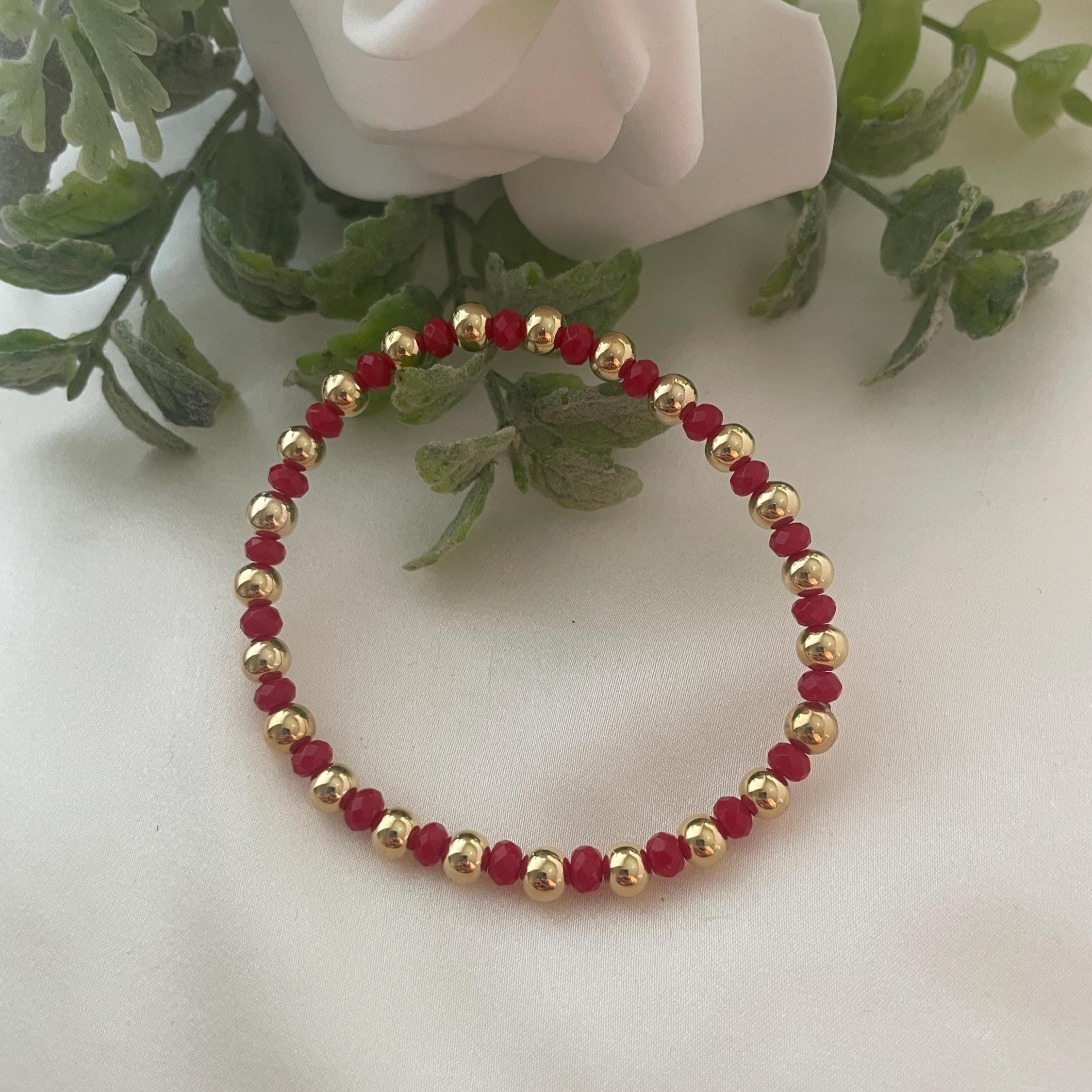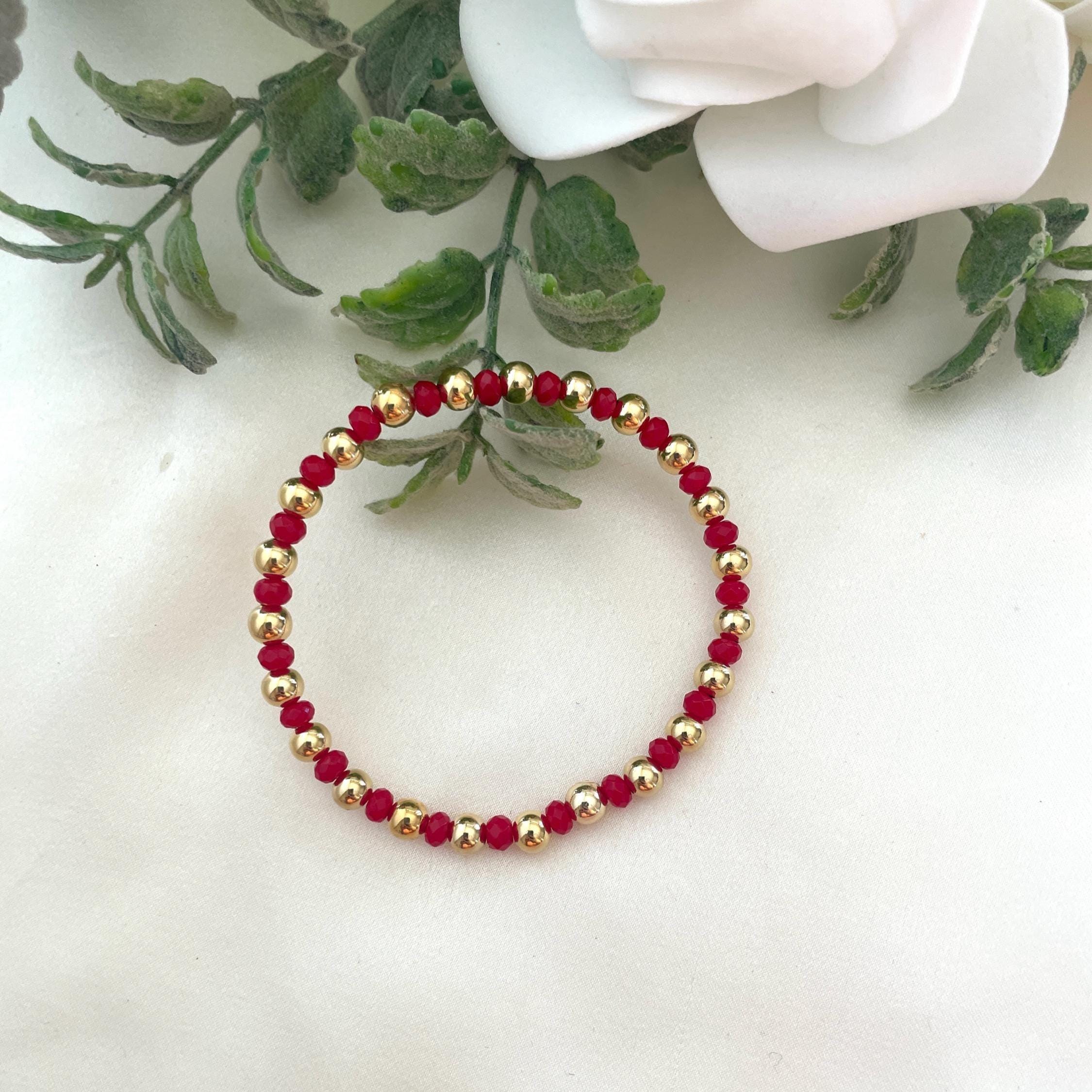 Red Agate Bracelet, Tiny Agate Bracelet, Crystal Dainty Bracelet, Semi-Precious Stones 4mm, Red Beaded Bracelet.