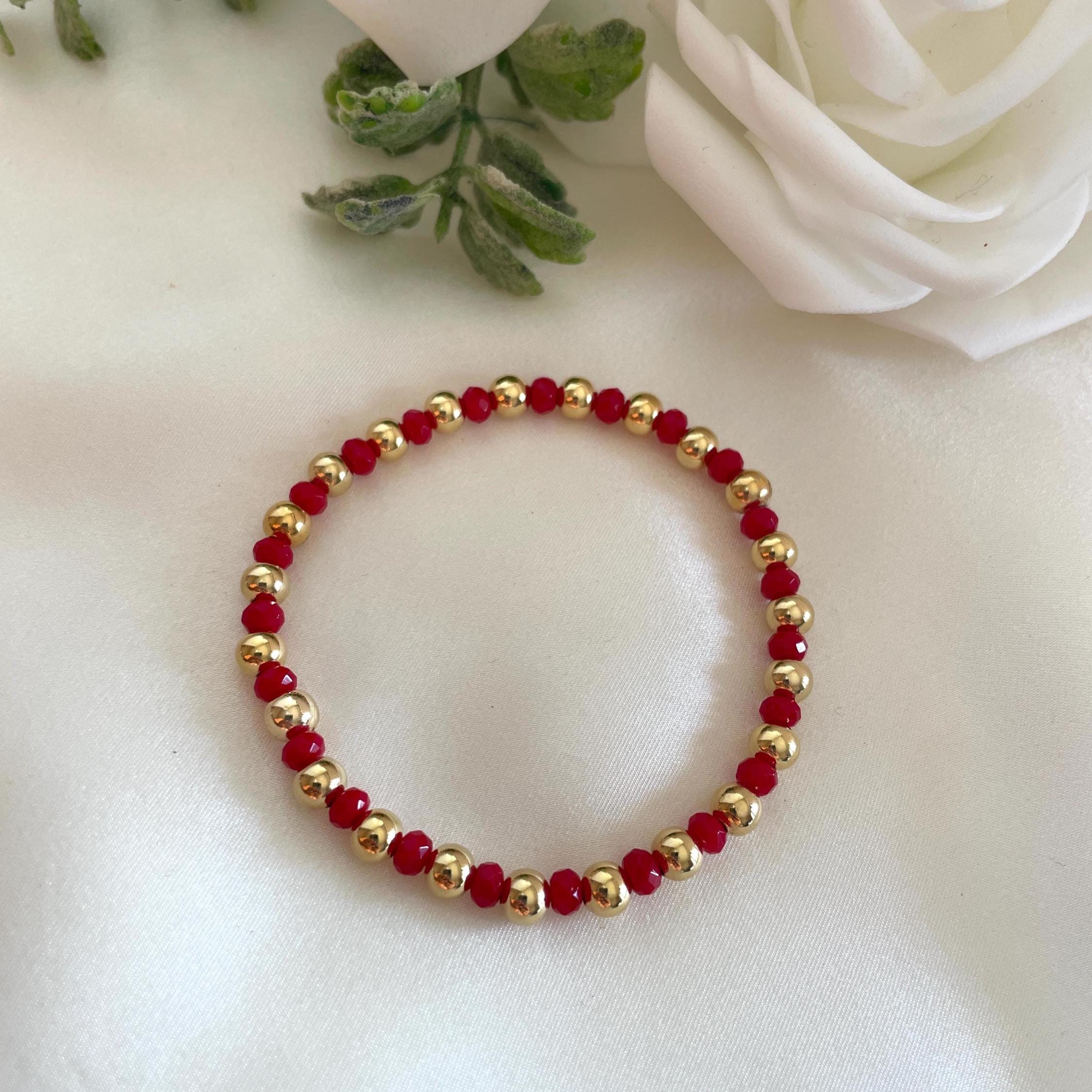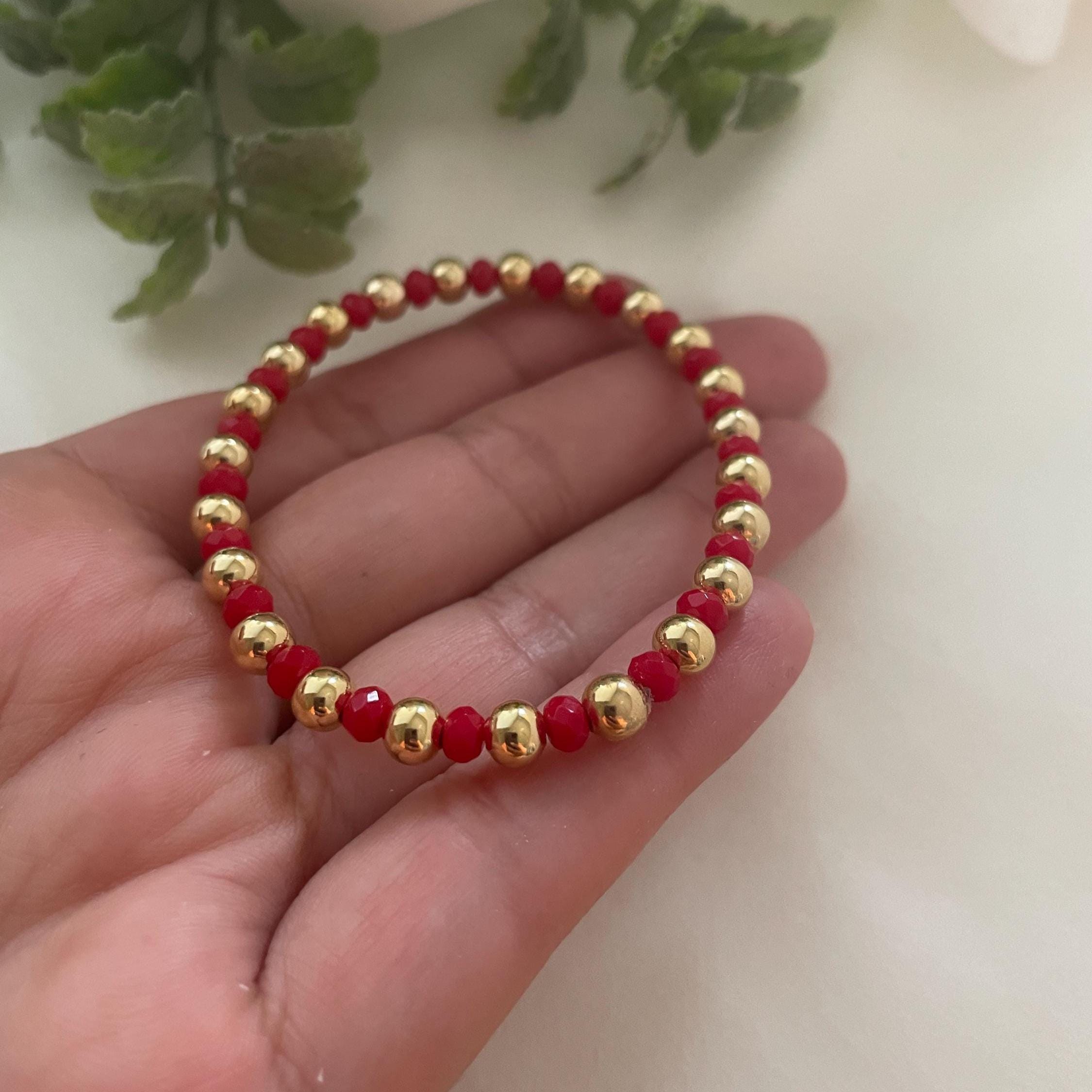 Dainty Red Agate Bracelet with Gold-Plated Ball – Stretchy Gemstone Jewelry ❤️✨