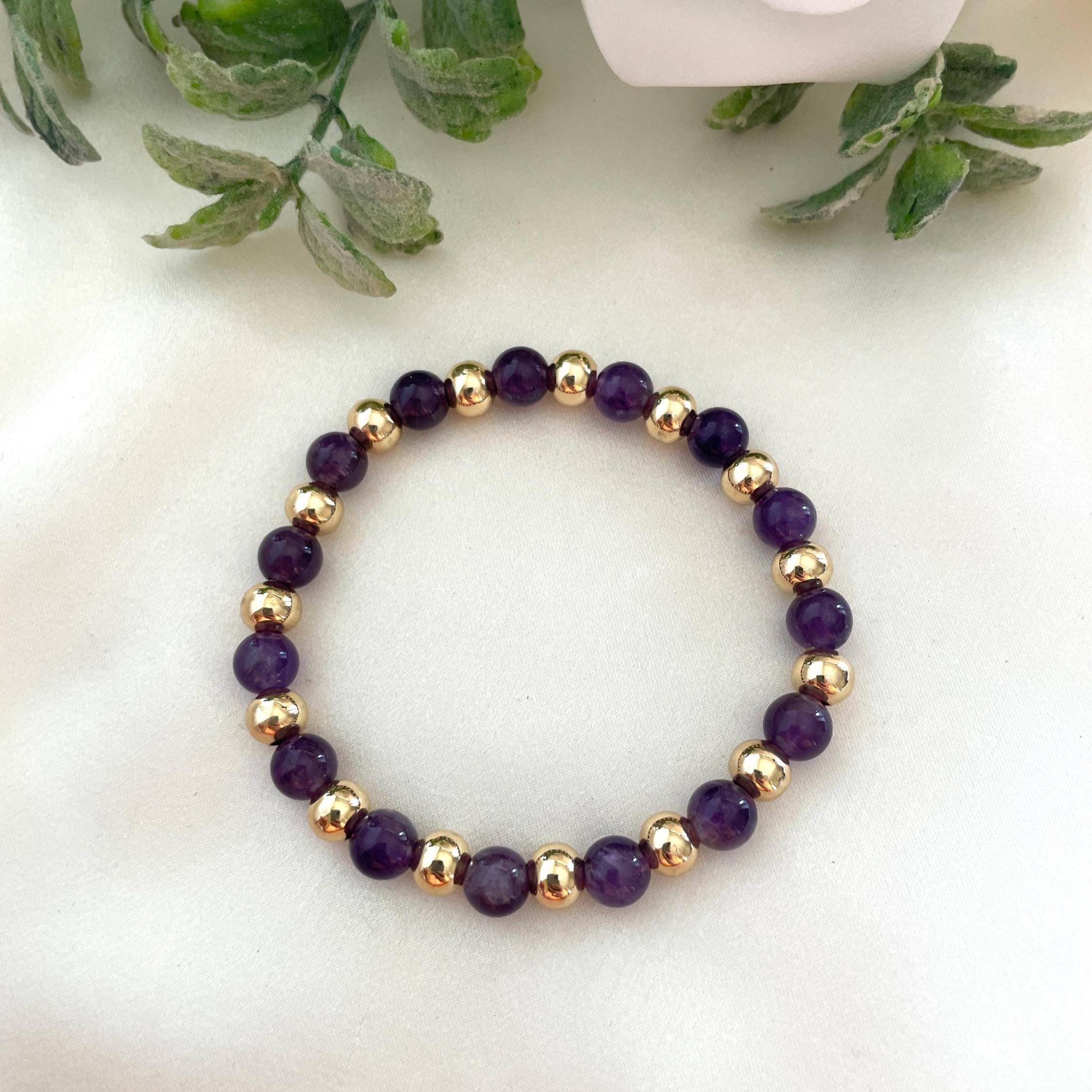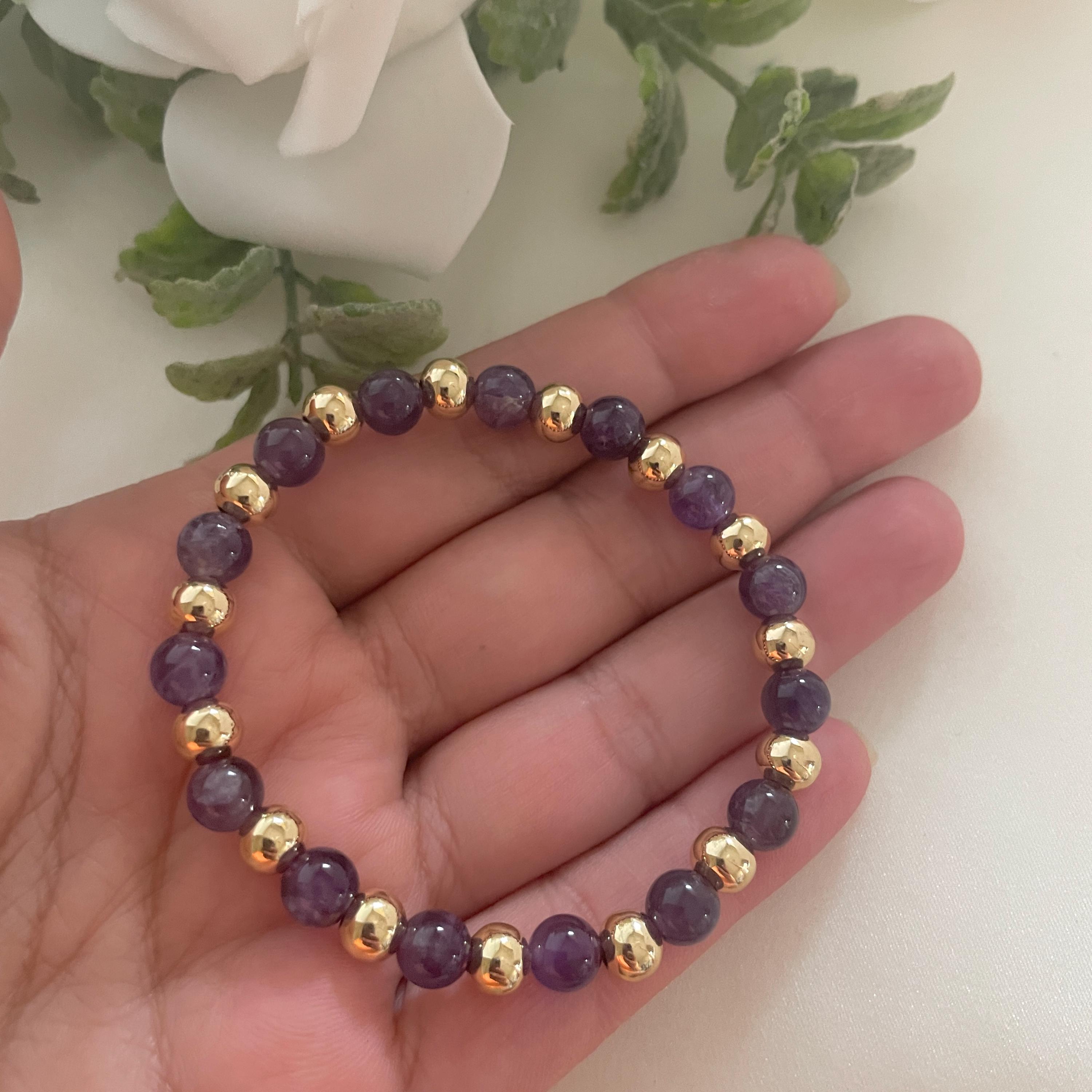Amethyst Beaded Bracelet with Gold Accent – Stretchy Handmade Jewelry 💜✨