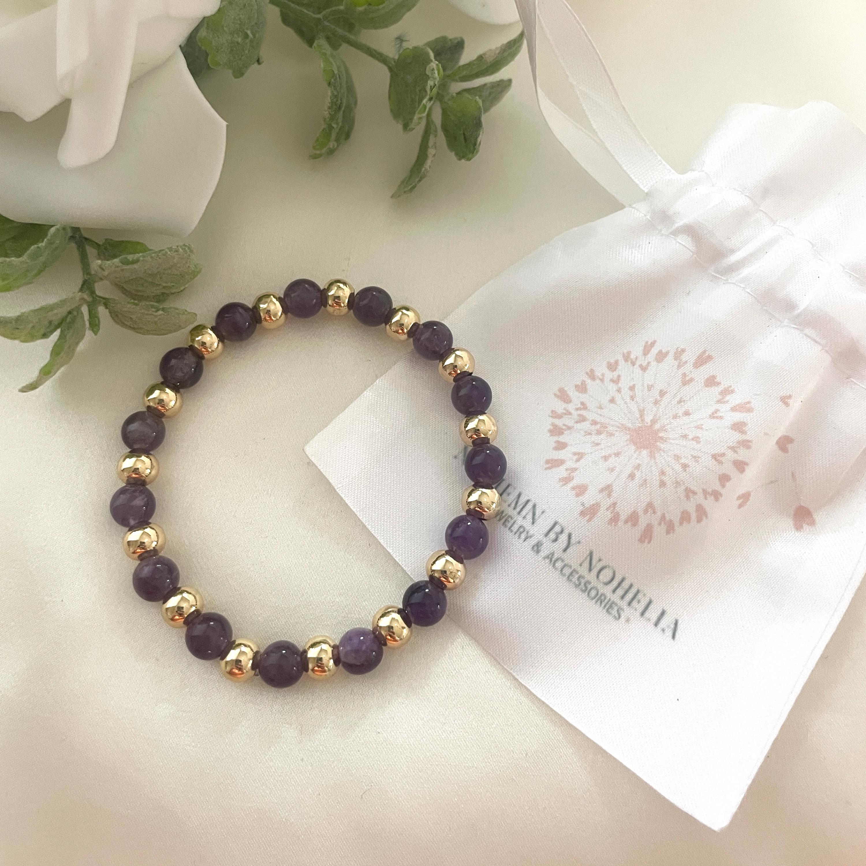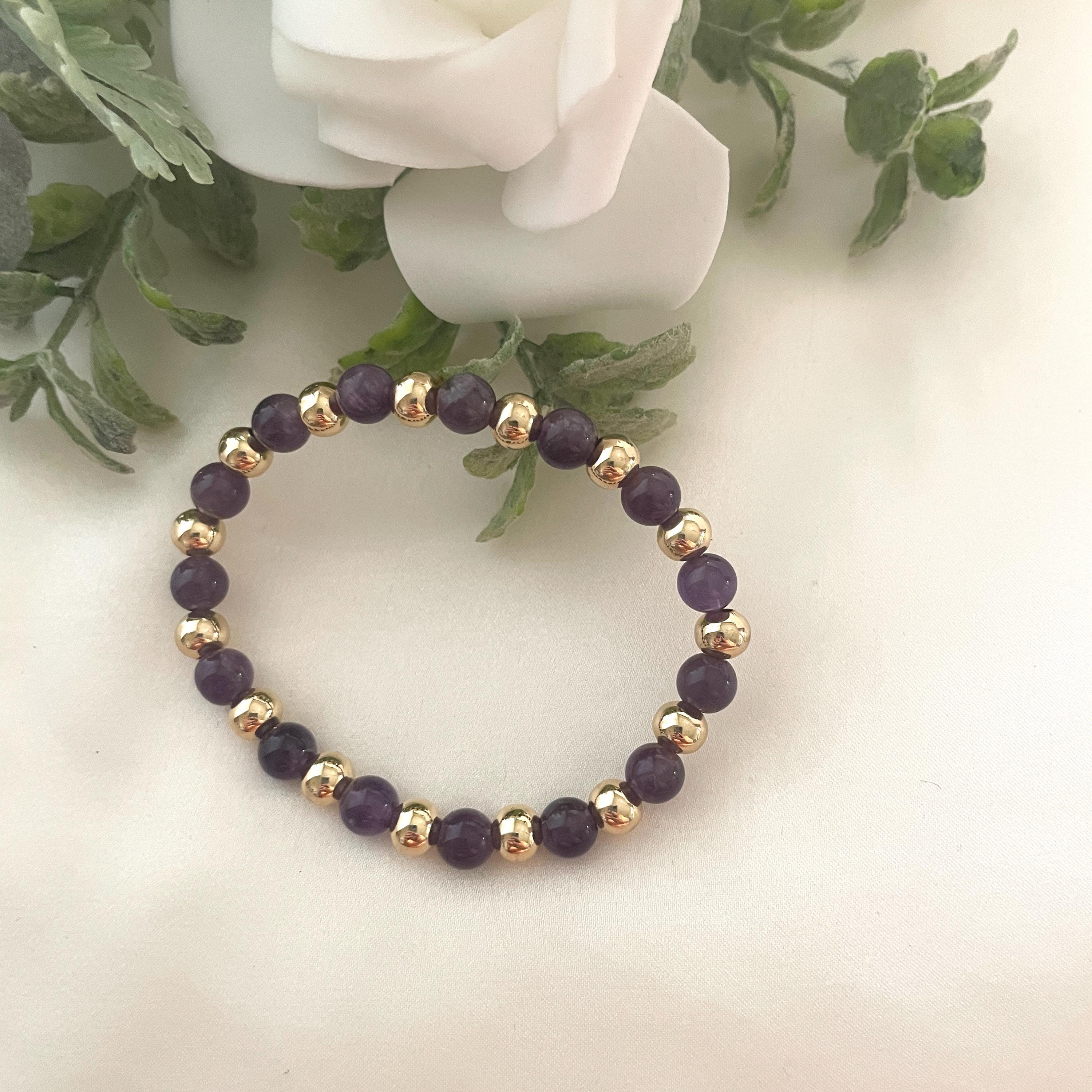 Elegant, calming, and full of natural beauty — this amethyst beaded bracelet is handcrafted with smooth gemstone beads and finished with a delicate gold accent bead for a refined, minimalist touch. Strung on a strong elastic cord, it’s perfect for everyday wear or stacking with your favorite bracelets.