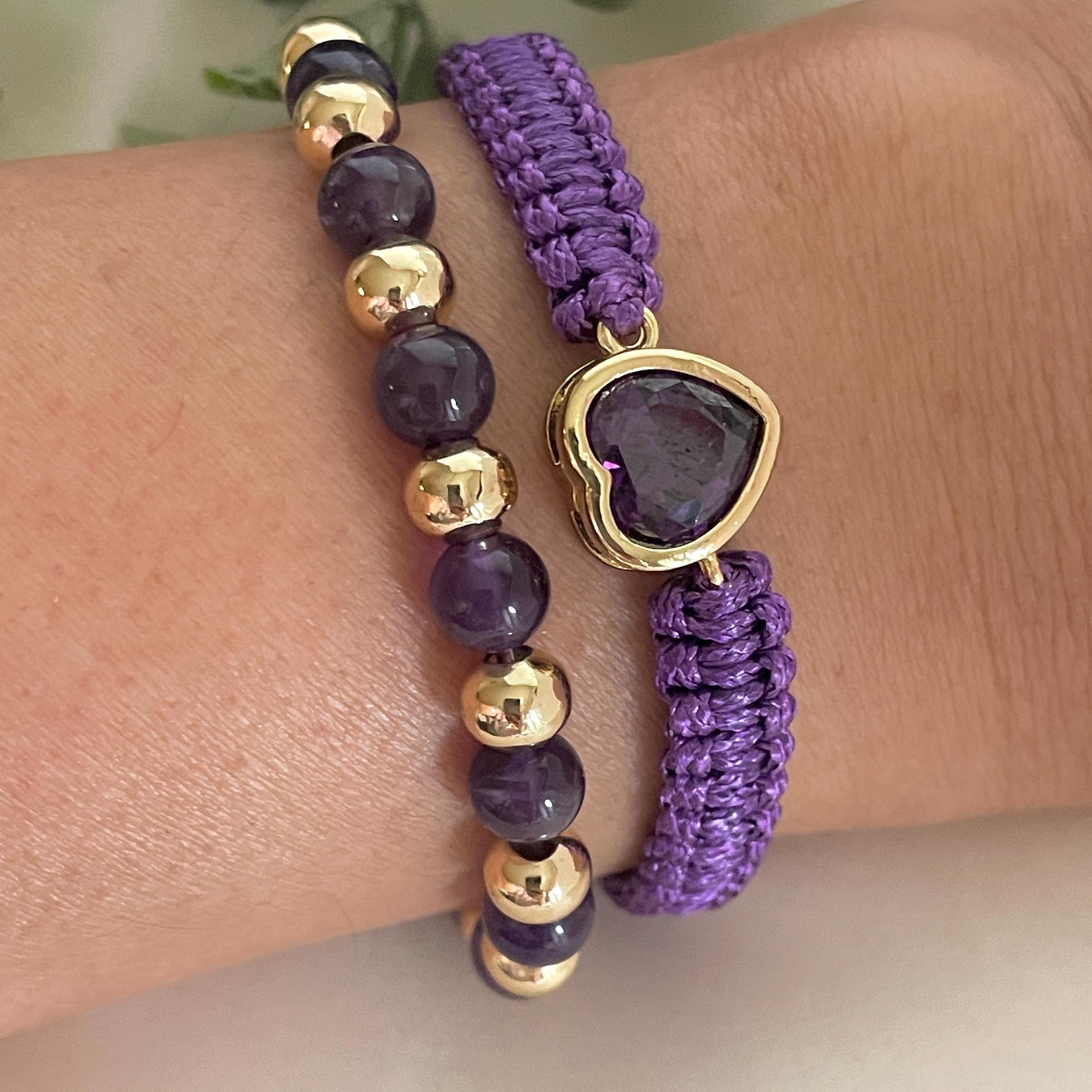 Amethyst Gemstone Bracelet, Braided Amethyst Bracelet, Minimalist Amethyst Crystal Bracelet, Natural Gemstone Dainty Bracelet.