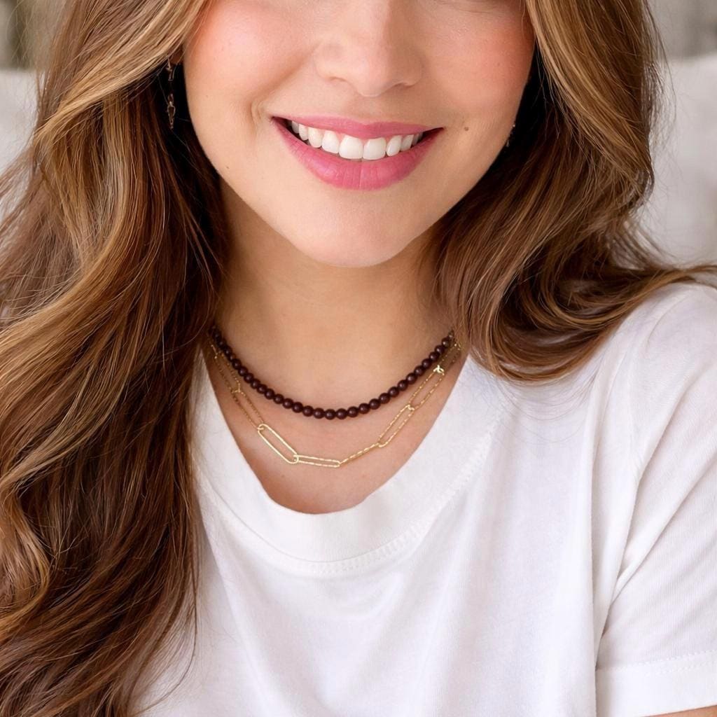 Elevate your everyday style with this delicate garnet tiny beads necklace, handcrafted with genuine garnet gemstones. Known for their energy, protection, and passion, garnets add a meaningful touch to your jewelry collection while bringing rich, warm red tones that are perfect for any season.