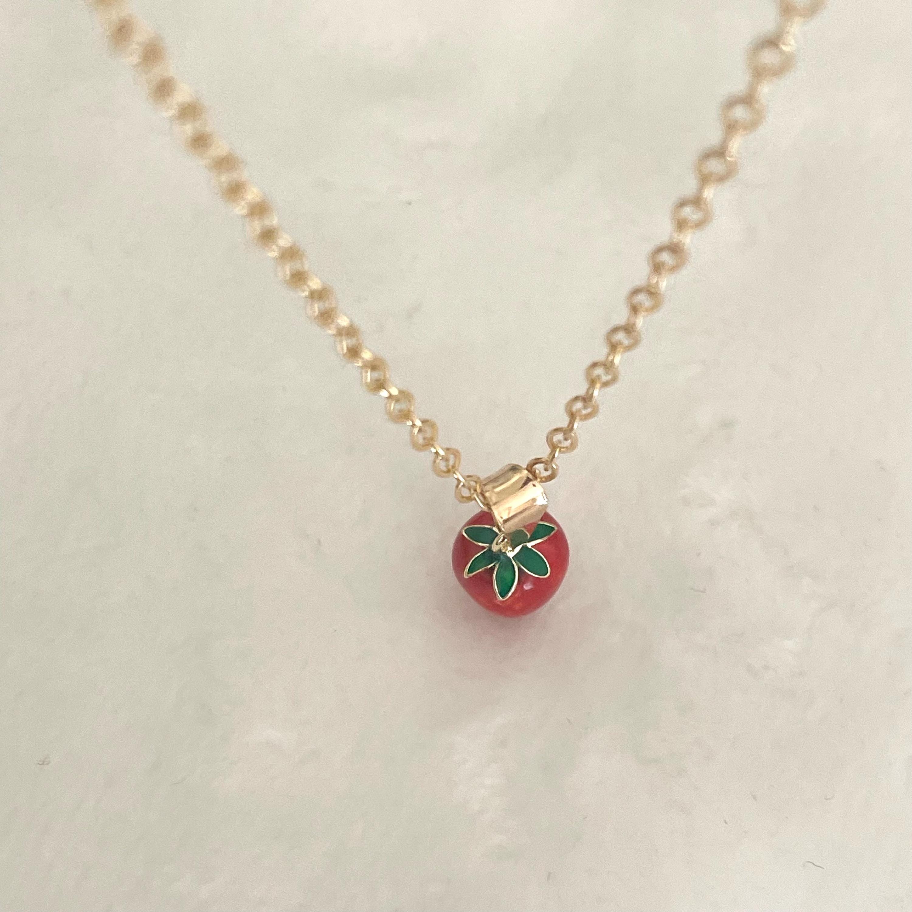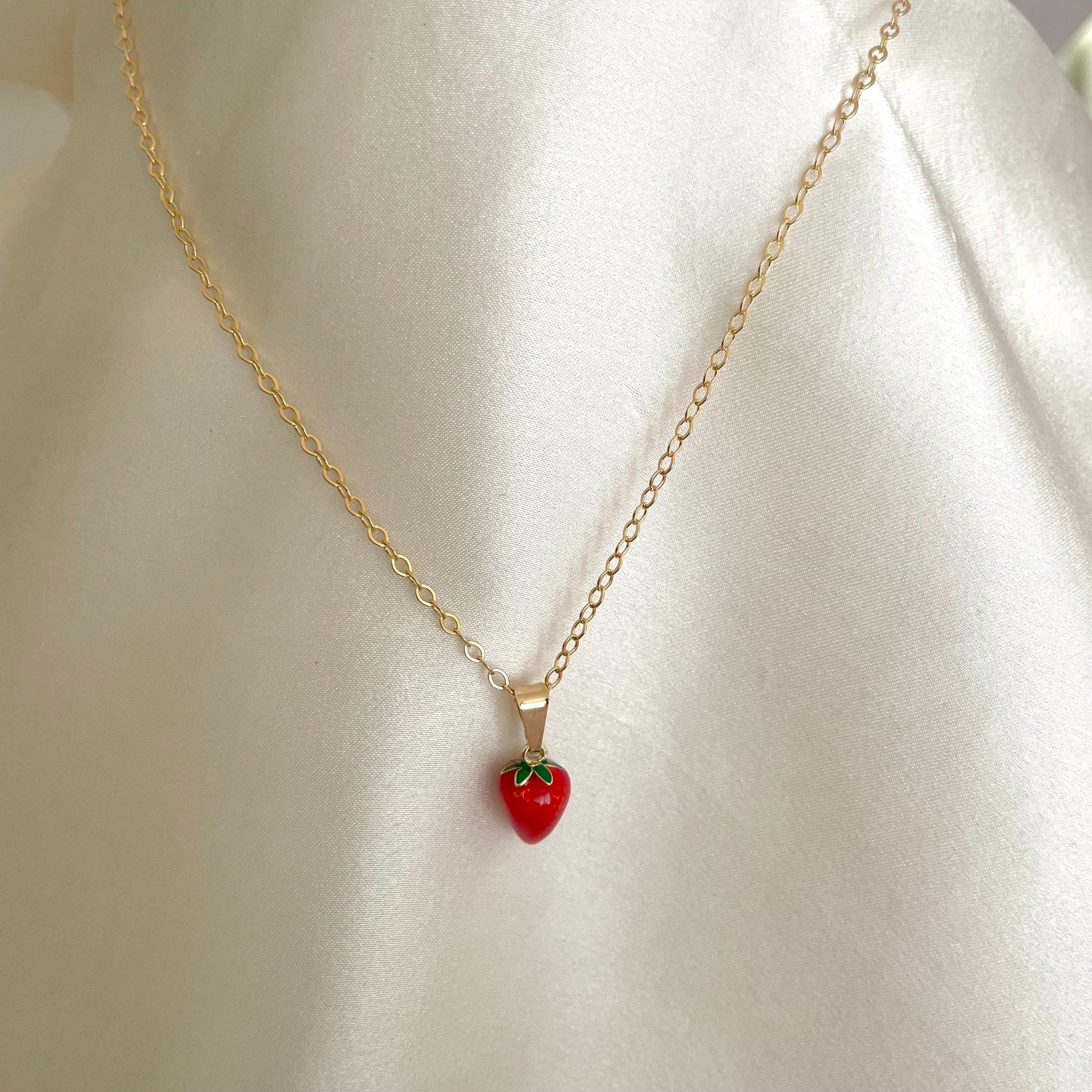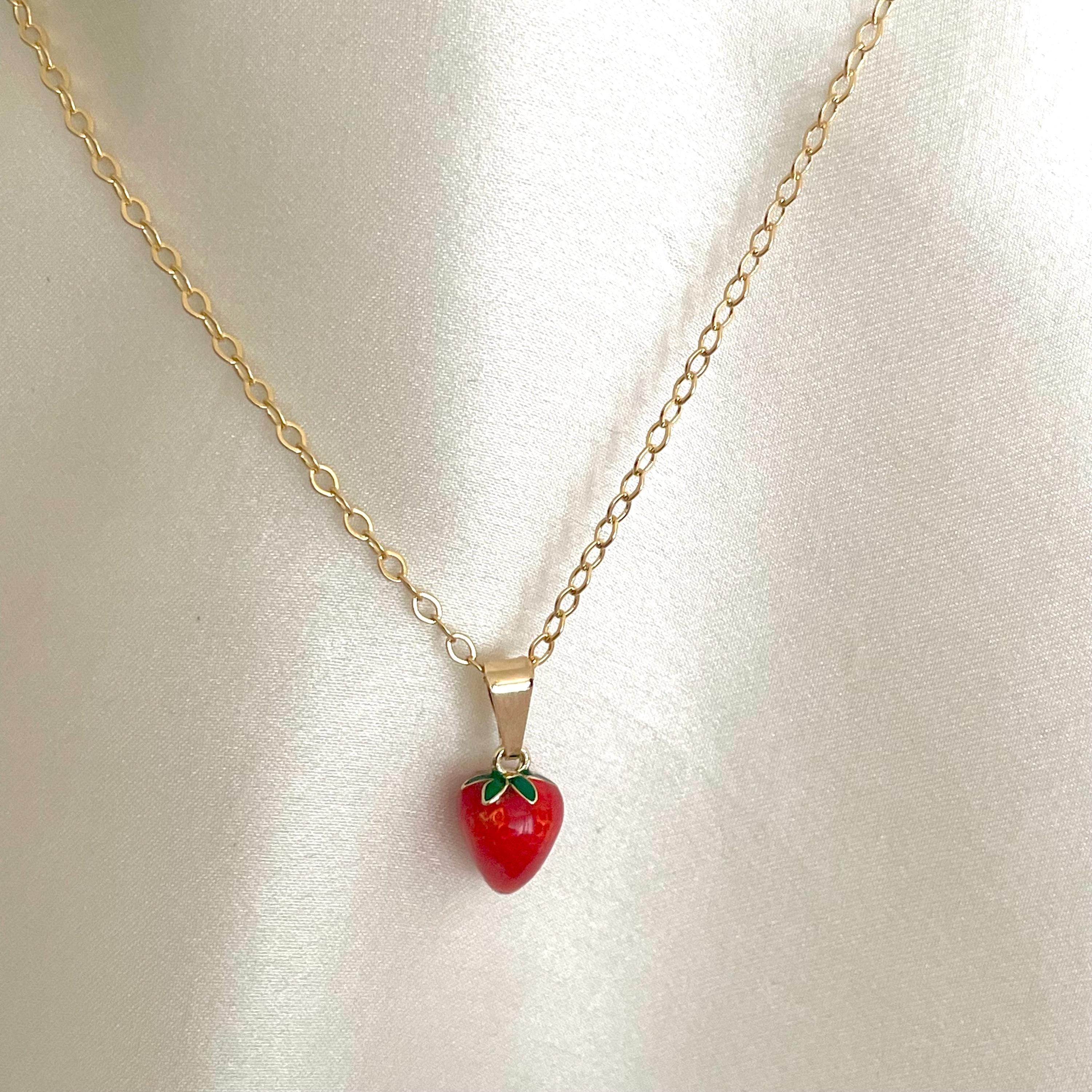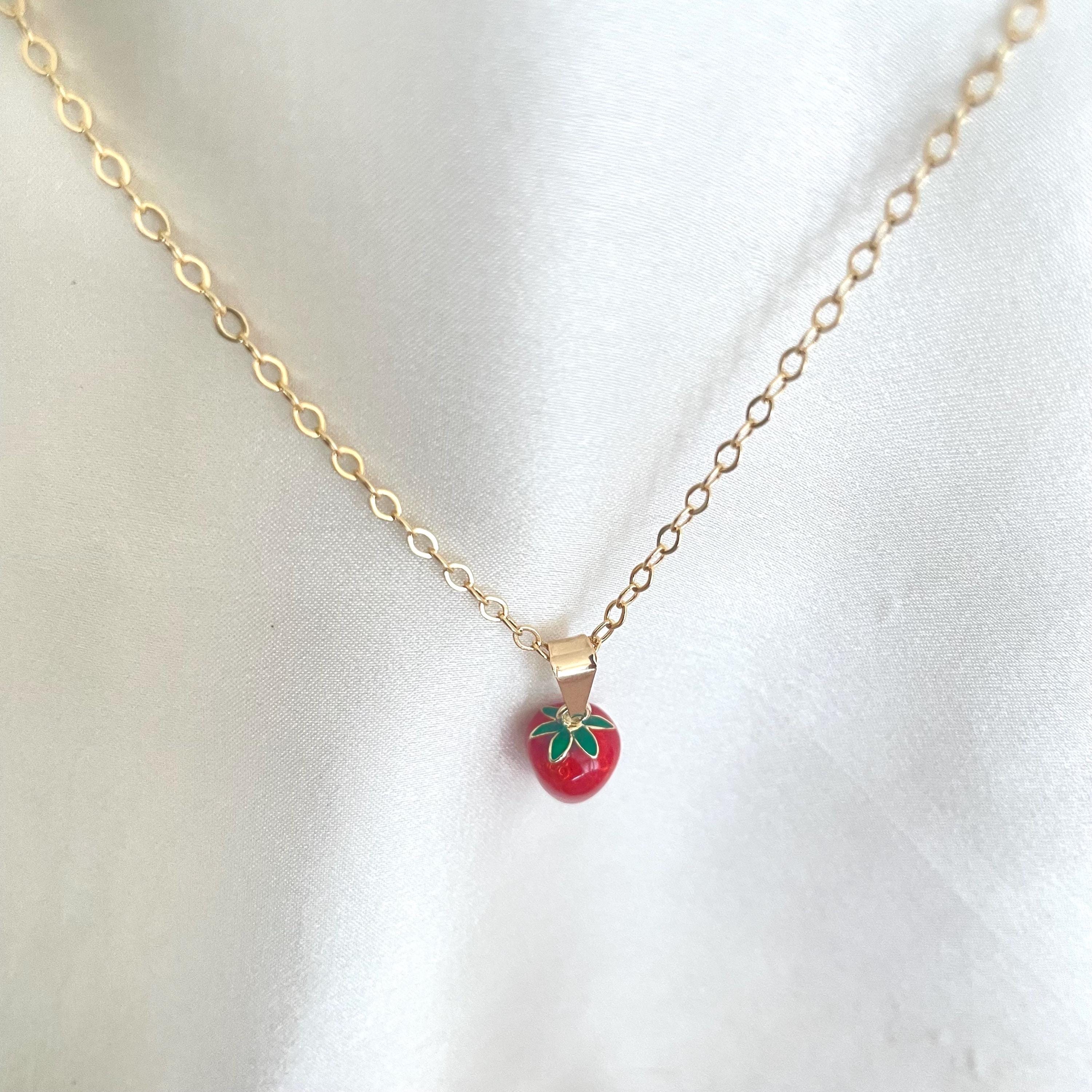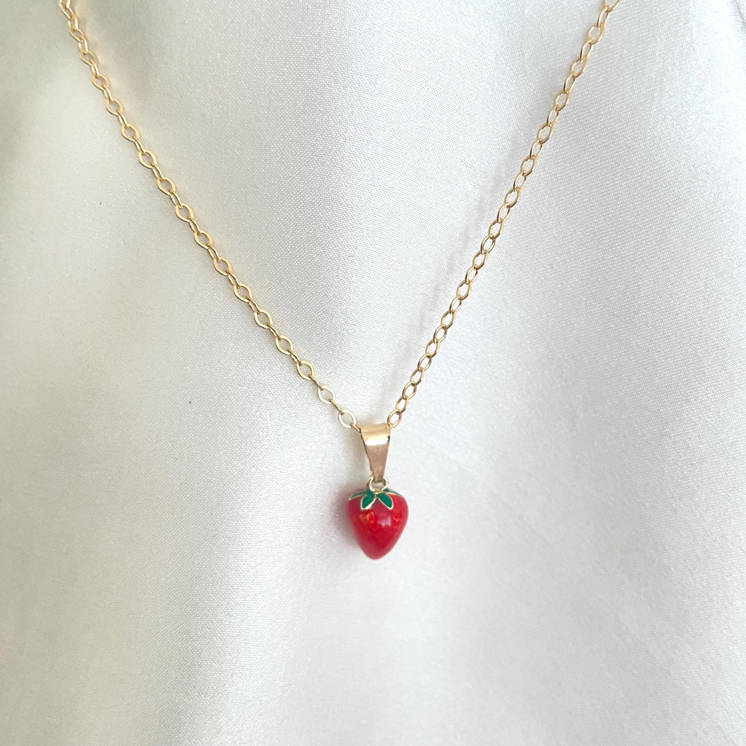 Strawberry Necklace: 18K Gold Plated, Enamel Charm, Tiny strawberry, Mini Strawberry Necklace