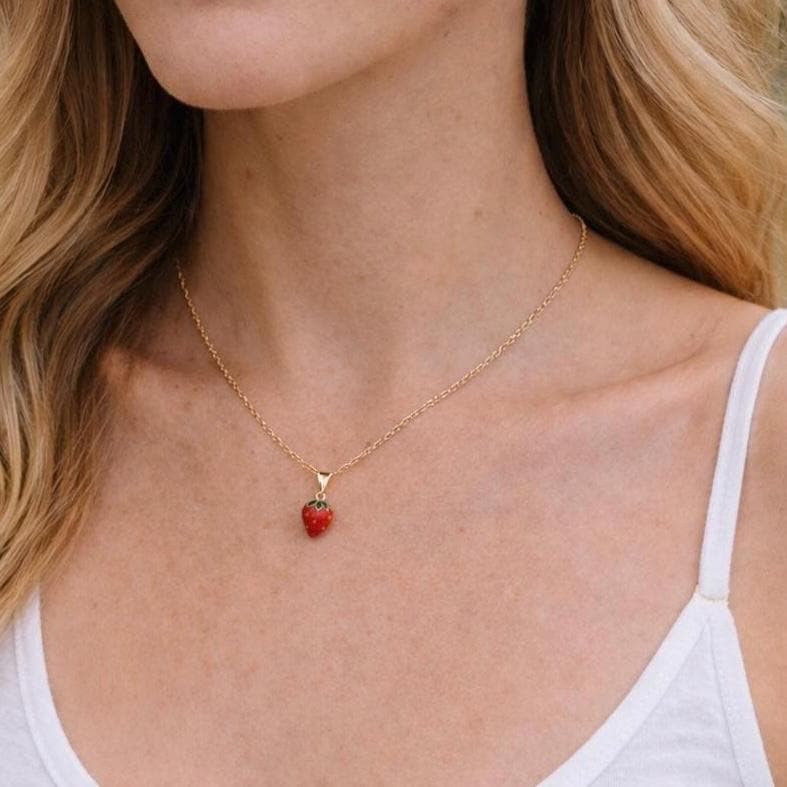 Lightweight and easy to wear, it’s designed for everyday comfort and effortless layering. Whether worn alone for a subtle statement or paired with your favorite necklaces, this tiny strawberry brings a fun, feminine touch to any outfit.