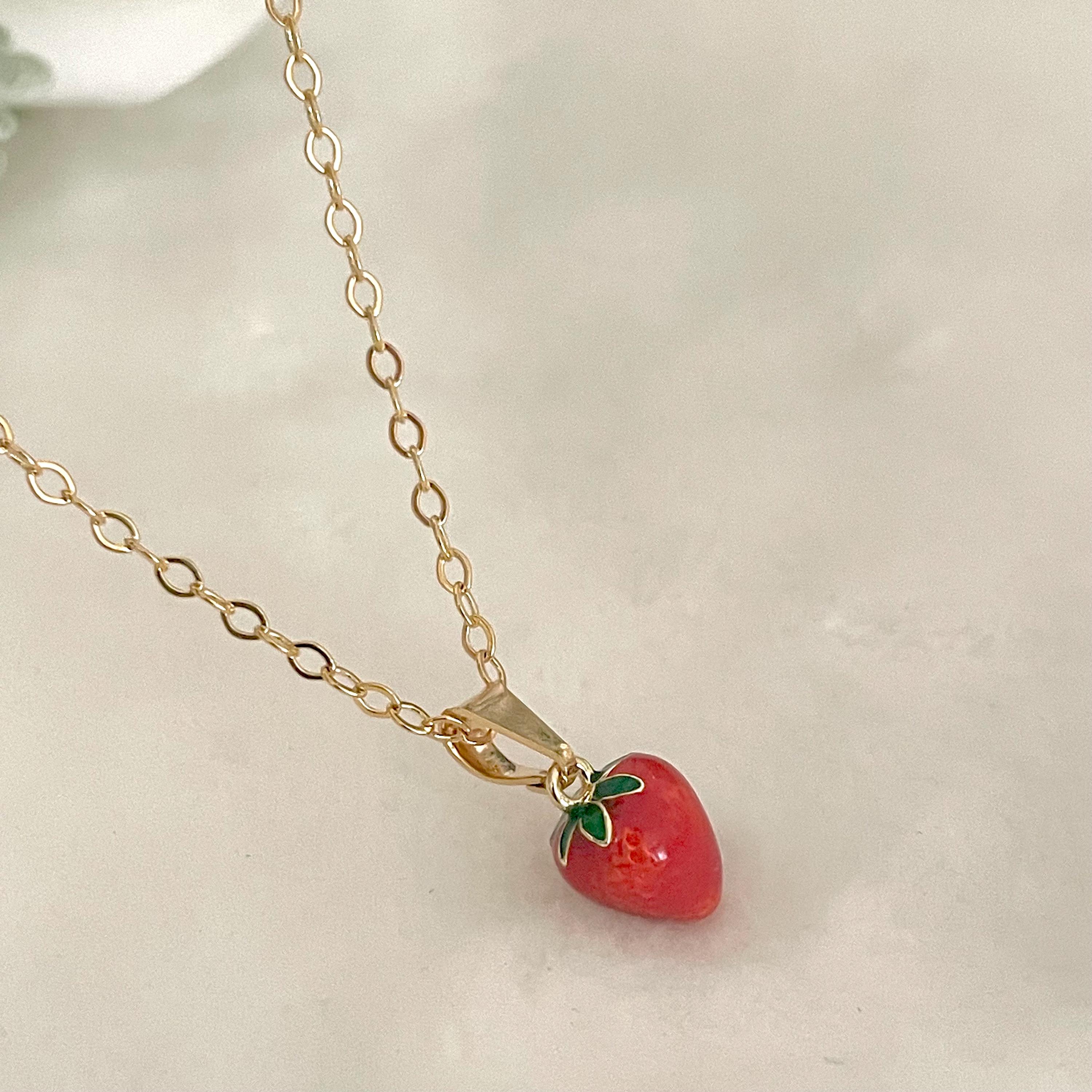 Sweet, playful, and full of charm, this Enamel Tiny Strawberry Necklace is the perfect little detail to brighten your everyday look. Featuring a delicate enamel strawberry charm, this necklace adds a pop of color and a touch of joy without feeling overdone.