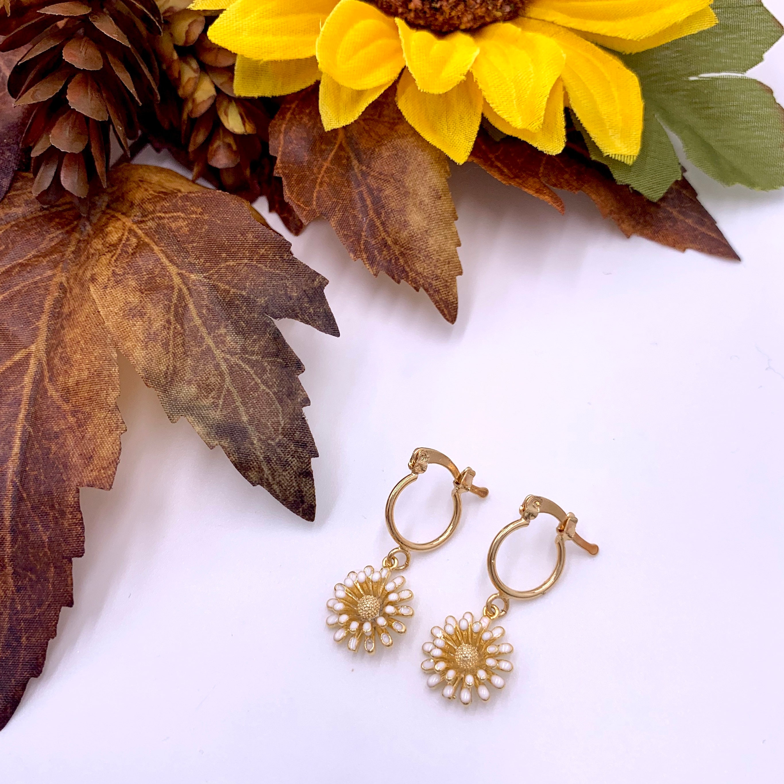Dainty Daisy hoop earrings for everyday wear. These daisy hoop earrings are just what you need!